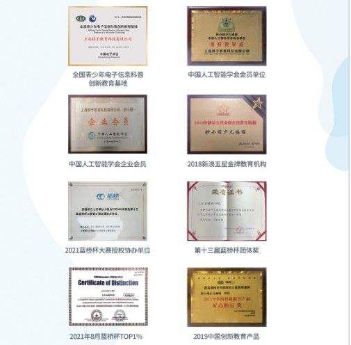 自成立以来,妙小程凭借优质的课程内容、专业的师资服务以及高效有趣的编程学习解决方案,赢得了众多荣誉,包括:中国人工智能学会合作教育企业、上海市科普产业基地重点培育企业、全国青少年软件编程等级考试的指定合作伙伴、第十一届蓝桥杯大赛协办方 ,并荣获 “2020 年度教育行业优质教学企业”、2018 新浪五星金牌在线教育机构等称号。
